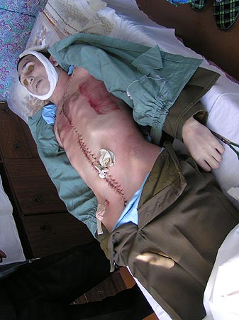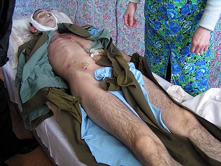 "Со слов свидетеля происшедшего, 2 января 2006 года рядовому Марату Динуллову группа старослужащих нанесла два ножевых ранения в область кишечника и в область сердца. Рана в области живота имеет форму круга, что, очевидно, свидетельствует о провороте ножа", - поясняет представитель УМОО "Гарантия".