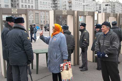 В связи с предпринятыми повышенными мерами безопасности милиция долгое время не пускала к месту проведения акции нескольких членов "Яблока", правозащитника Алексея Бабушкина, проблемы с проходом возникли у ряда журналистов.
