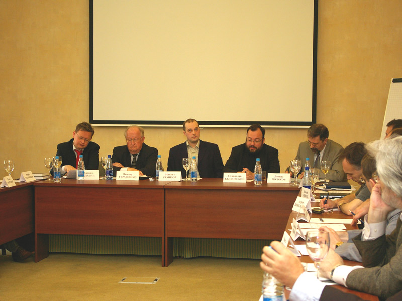 В круглом столе приняли участие председатель партии "Великая Россия" Андрей Савельев, руководитель Института проблем глобализации Михаил Делягин, заместитель председателя московского отделения партии "Яблоко" Алексей Навальный, заместитель председателя Объединенного гражданского фронта Александр Рыклин, профессор Высшей школы экономики Леонид Поляков и руководитель Института национальной стратегии Станислав Белковский.