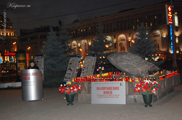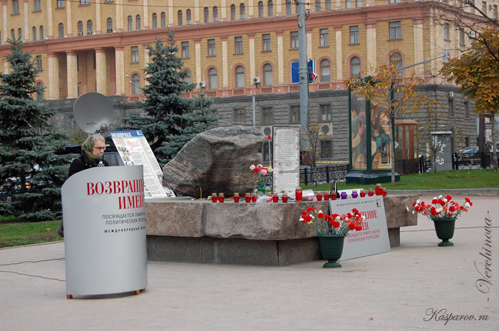C 10 утра до 10 вечера правозащитники, сменяя друг друга, зачитывают имена погибших в годы большого сталинского террора, 70-я годовщина которого будет отмечаться 30 октября.