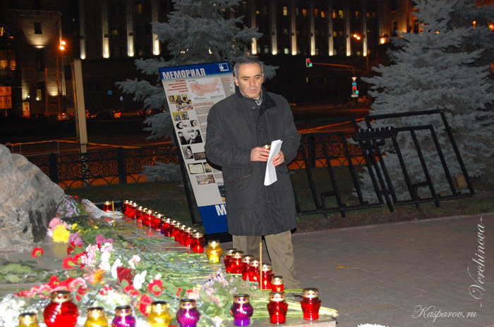 В акции у здания ФСБ принимают участие уполномоченный по правам человека в России Владимир Лукин и лидер ОГФ, один из лидеров коалиции "Другая Россия" и кандидат в президенты от оппозиции Гарри Каспаров.