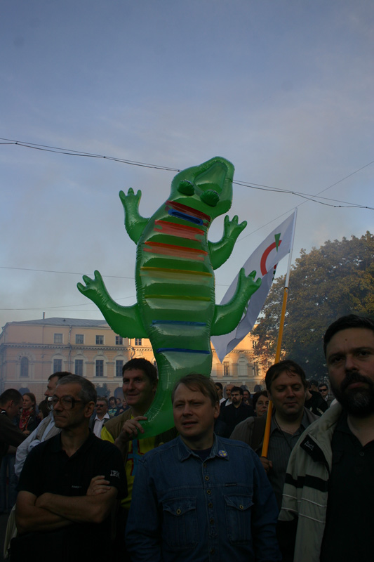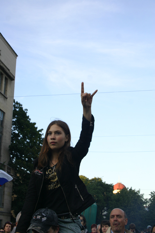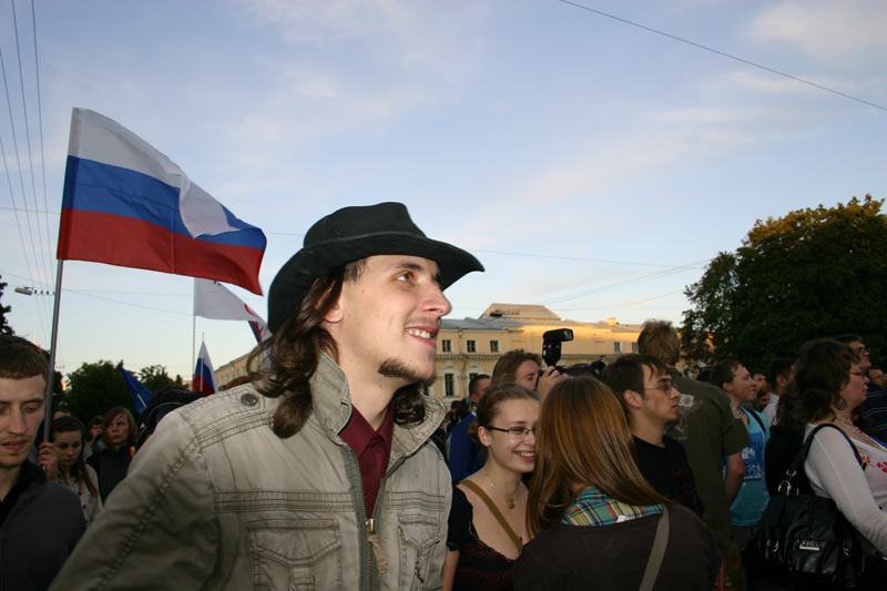 Он сказал, что в 1991 году в России произошла демократическая революция, однако потом результатами свободы воспользовались негодяи. "Мы все вместе должны довести революцию до конца". - сказал Борзыкин. Он исполнил более 10 песен.