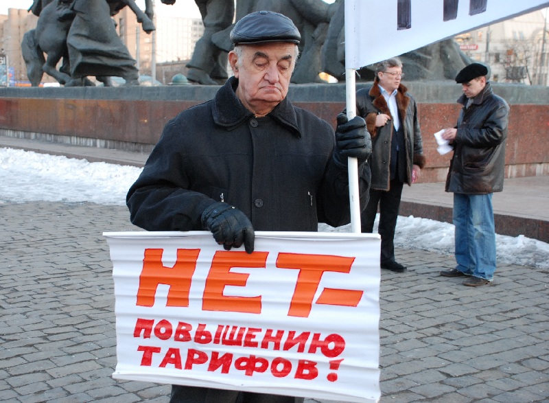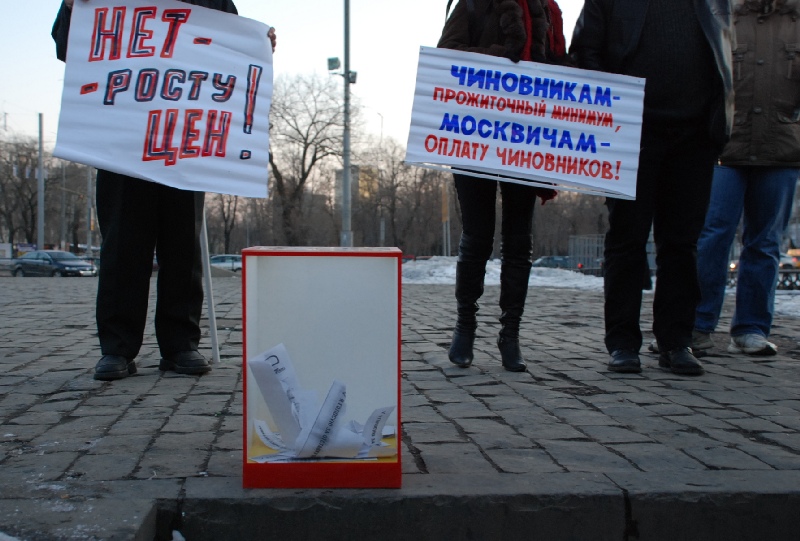 Активисты держали растяжку "Правительство Путина в отставку!" и плакаты "Нет повышению тарифов!", "Нет массовым увольнениям!", "Нет росту цен!" и другие. Они скандировали: "Россия без Путина!" и "Путина в отставку!".