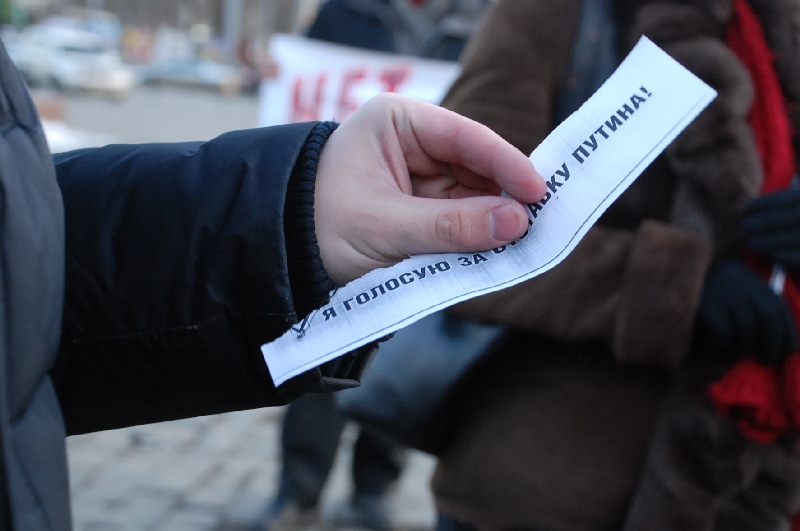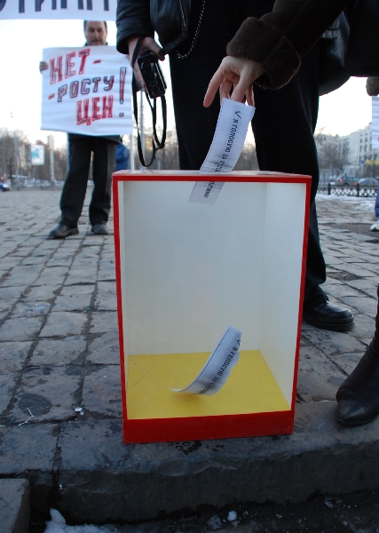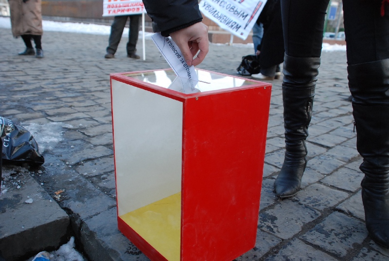 На пикете 15 активистов ОГФ собирали подписи у прохожих за отставку Путина. Также участники акции установили стеклянную урну, в которую все желающие могли опустить бюллетени с голосом за отставку премьер-министра.
