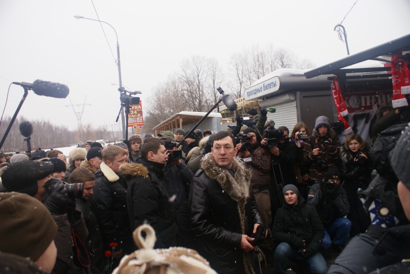 Кроме того, траурную акцию посетил лидер партии "Яблоко" Сергей Митрохин. Как сообщили Каспаров.Ru в пресс-службе партии, Митрохин возложил цветы к остановке, где был убит болельщик. Перед своим уходом он вступил в короткую полемику с рядом людей националистических взглядов, однако они не требовали его удалиться.