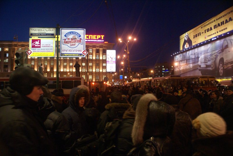 В Москве 31 января в 18:00 на Триумфальной площади прошли две акции в защиту 31-й статьи Конституции, гарантирующей гражданам свободу собраний. По оценкам ГУВД, в этот день на площади собралось около 500 человек, однако, по словам участников акции и журналистов,