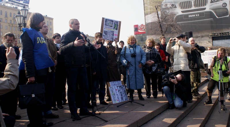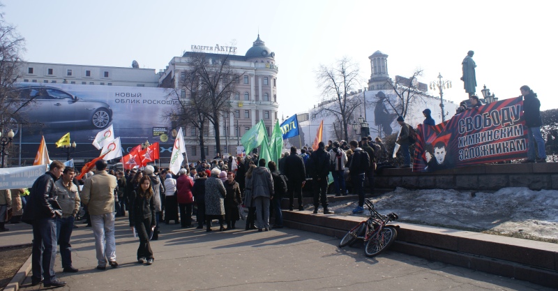 В Москве 3 апреля на Пушкинскую площадь вышли активисты политических и общественных движений, чтобы выразить свой протест против коррумпированности строительной отрасли России и игнорирования государством интересов населения, передает корреспондент Каспаров.Ru.