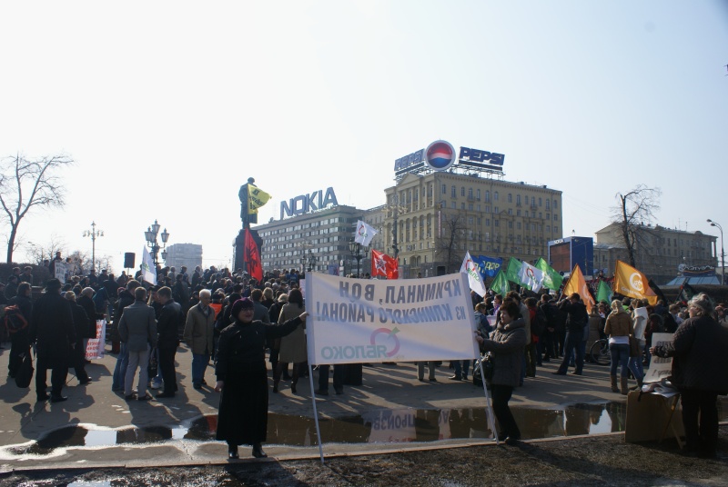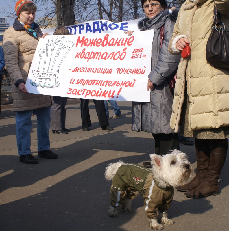 На площадь пришли защитники Битцевского парка и противники точечного строительства в Ясенево. Жители Отрадного держали транспоранты против "народных гаражей" в их районе. Другая группа общественных активистов требовала недопустить вырубку лесов у реки Клязьмы, через которые должна пройти трасса из Москвы в Санкт-Петербург. Протестовали жители Клина и Солнечногорска.