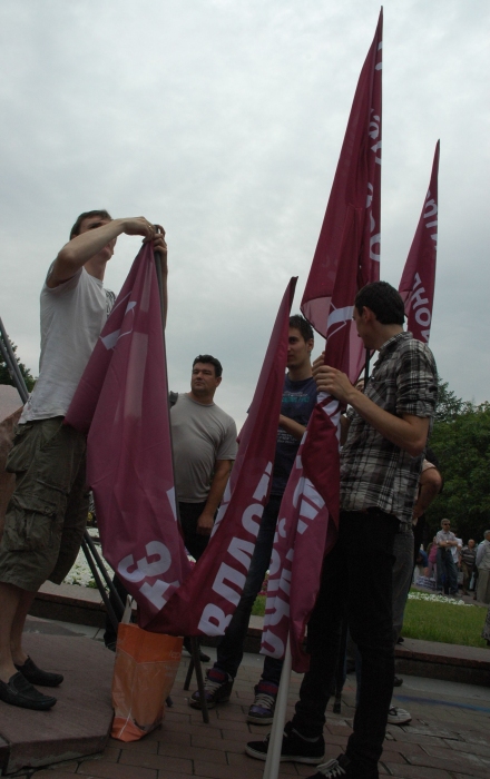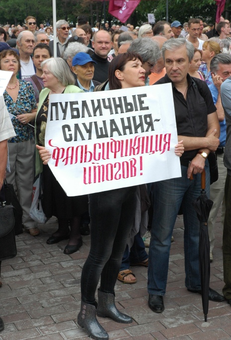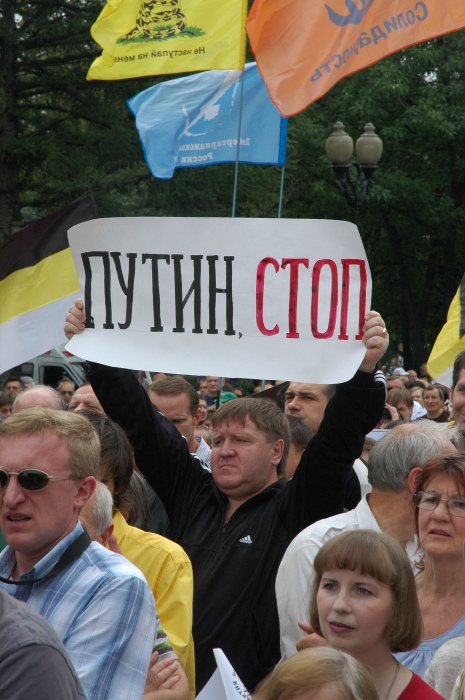 Участники митинга скандировали "Выборы без оппозиции - преступление", "Путин и Медведев долой", "Путин должен уйти", "Долой Объединенный народный фронт", "Долой нечестные выборы".