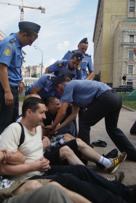 В Москве на Лубянской площади сотрудники правоохранительных органов задержали 21 участника сидячей забастовки в поддержку политзаключенной Таисии Осиповой у Соловецкого камня. Об этом 20 июля сообщает корреспондент Каспаров.Ru с места событий.
