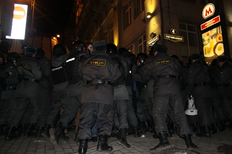 22:17 Кошки-мышки с ОМОНом на Триумфальной закончились. "Несогласных" окружили, загнали к метро и задержали за считанные минуты.