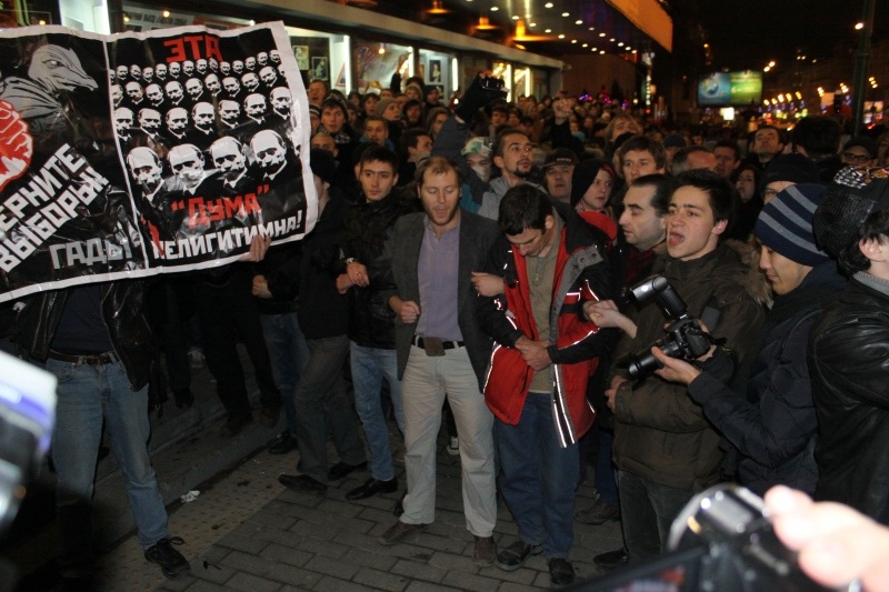 В Москве и Санкт-Петербурге продолжились акции протеста против нечестных выборов, стартовавшие накануне. На этот раз у них нет никаких организаторов. Участники координировали свои действия в Интернете. К народной инициативе присоединились различные политические и общественные движения.