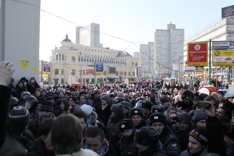 Удальцов передает о 30 тысячах участников. ГУВД — о 3 тысячах.