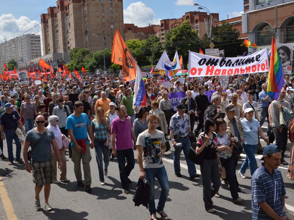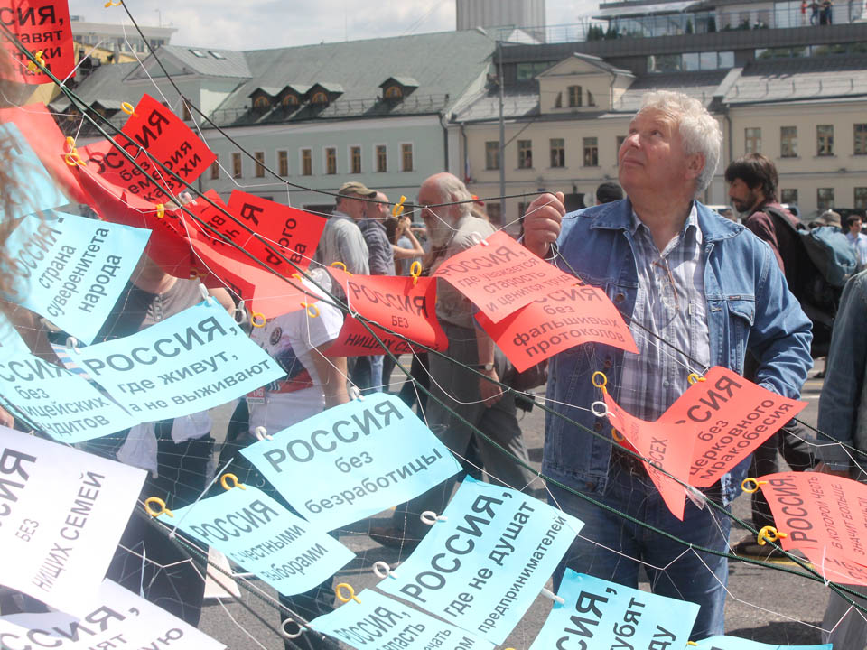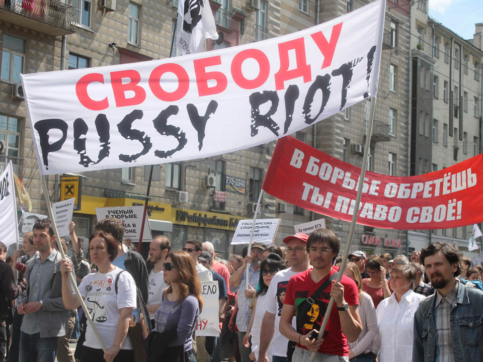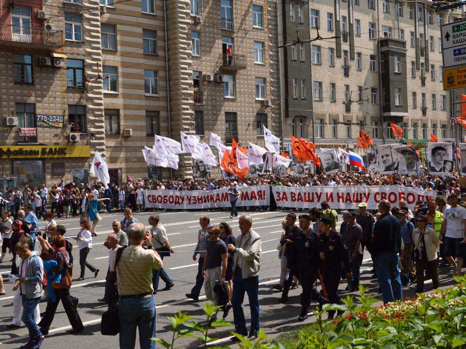 Собравшиеся выступили с требованиями освободить фигурантов дела о беспорядках на Болотной площади в мае 2012 года и активисток Pussy Riot.
