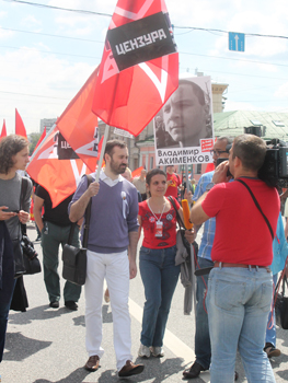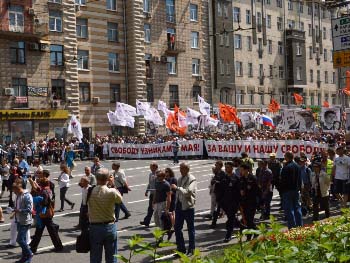 В ходе акции были задержаны 9 активистов "Левого фронта". Их обвиняют в использовании запрещенной символики (флагов их партии). Шествие двигалось по улице Большая Якиманка от Калужской площади до Болотной.