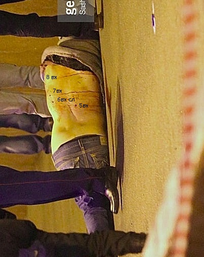 Вранье! Публикуемая мною рана на животе, является именно раной на животе! А раной на спине оказалась другая фотография из фототаблицы, которую я ошибочно привязал к этой же фотографии с раной на животе.