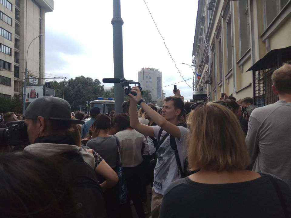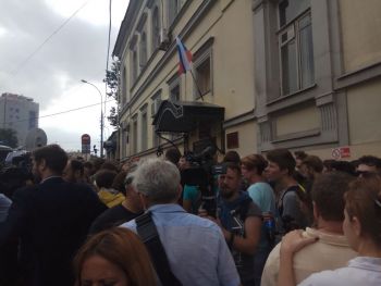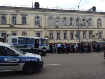 Люди стоят у самого суда, а также на противоположной стороне Каланчевской улицы. Полиция усилила меры безопасности. Правоохранители просят собравшихся не выходить на проезжую часть.