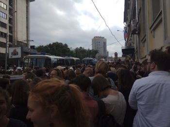 В Москве у здания Басманного суда, где сегодня проходит избрание меры пресечения режиссеру Кириллу Серебренникову, собрались более трехсот людей. Об этом сообщает корреспондент Каспаров.Ru.